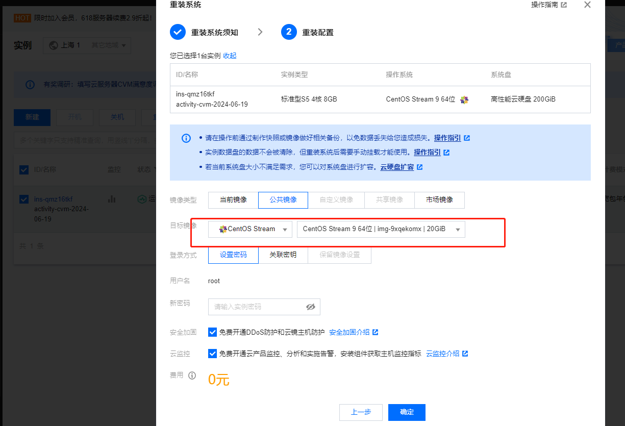 备注:安全加固和云监控勾选需去掉,后面有需求再进行购买