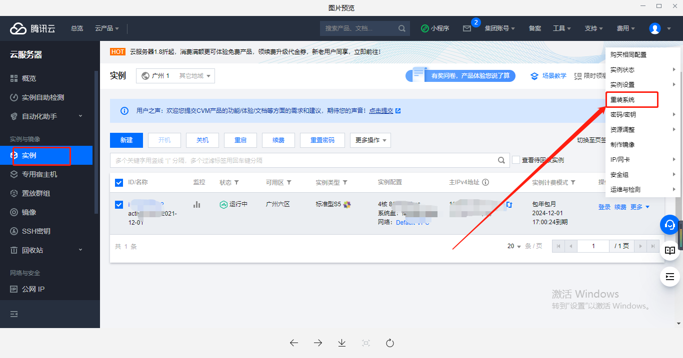 系统盘扩容(云服务器-实例-找到对应的区)