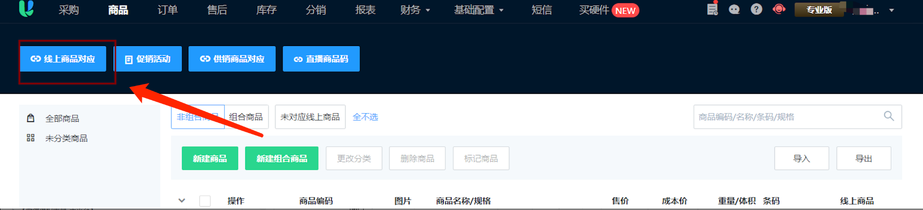 手动推送订单,提示:商品未同步无法推送