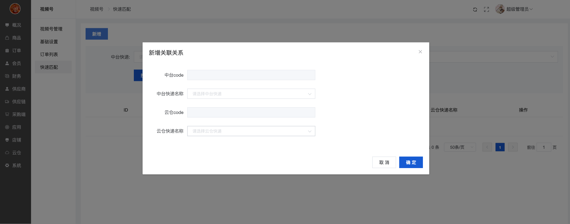 供应链中台和视频号小店官方快递编码不一致的可手动关联匹配