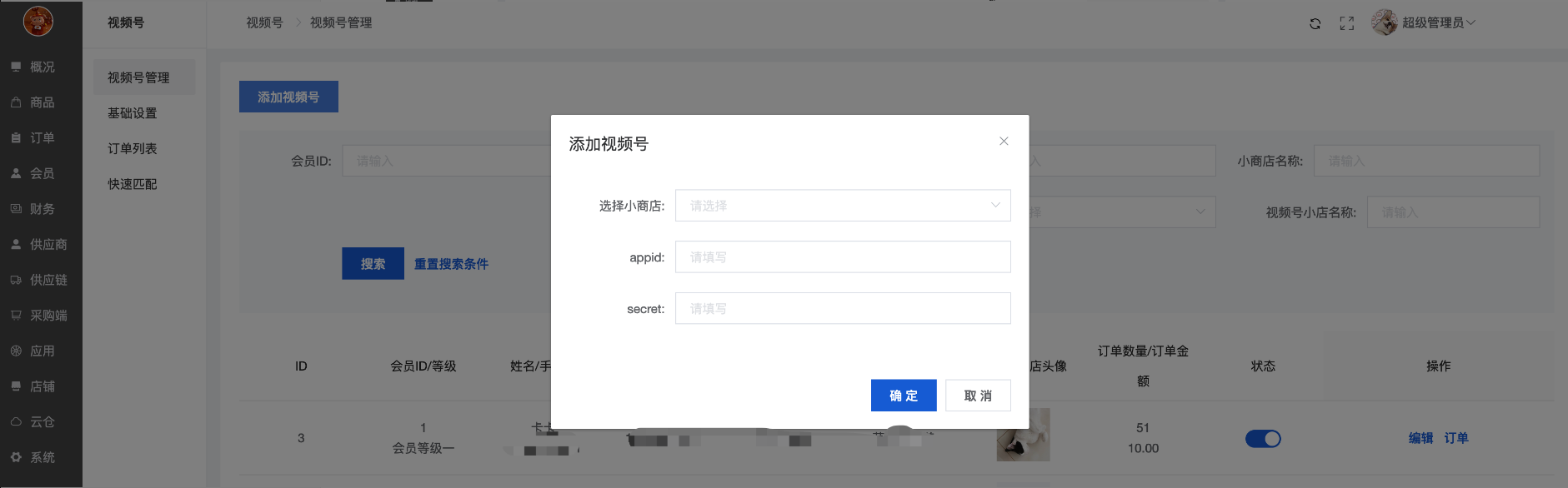 登录后在会员中心--视频号小店中可以配置管理自己的视频号