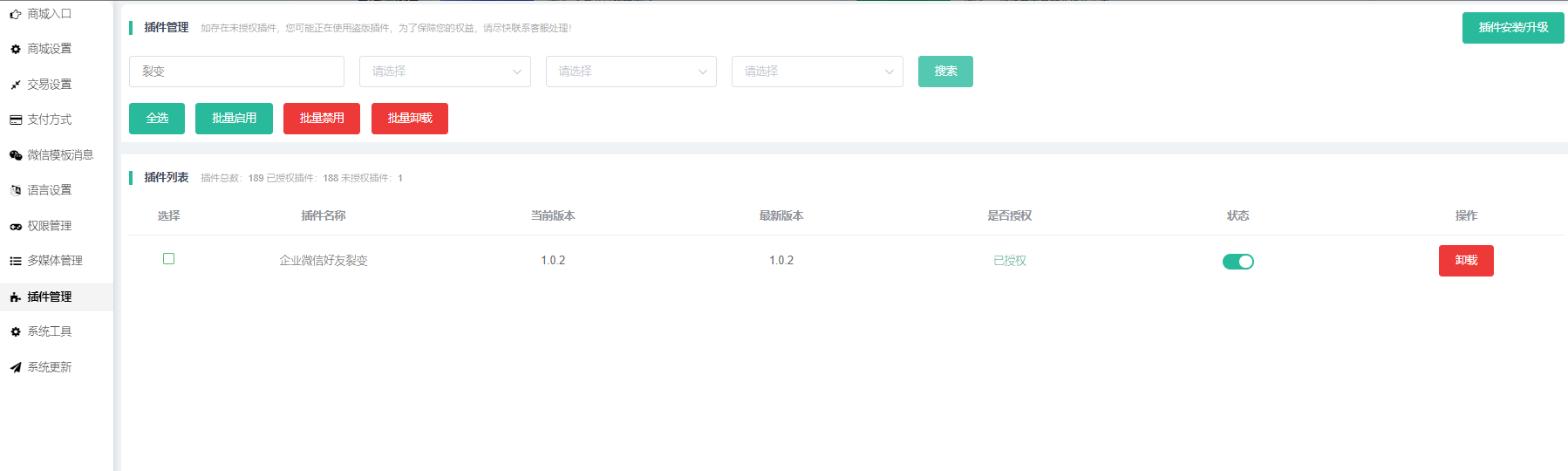 二、插件入口(授权安装启用插件)