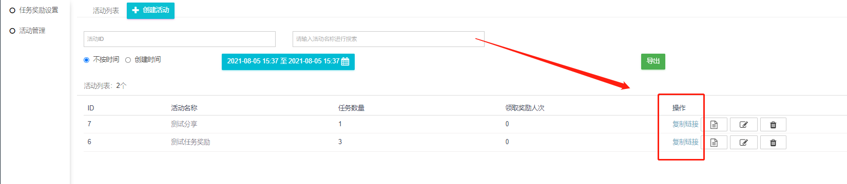 2、创建好活动后,需要点击任务条件进入创建奖励内容