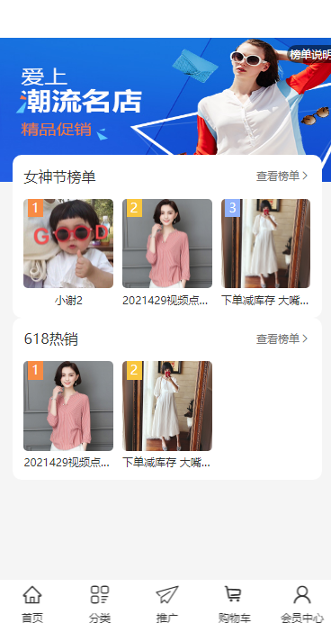 后台添加的所有榜单都会显示在商品榜单聚合页中。
