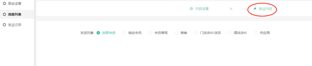 可选择全部会员、指定会员、会员等级(可指定等级)、推客(可指定等级)、门店店长/店员、酒店店长、供应商。