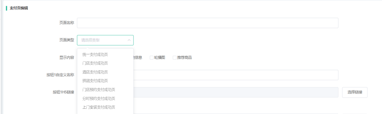 (2) 每个类型只能启用一个,若所有类型都不启用则显示默认的支付营销页面(每个页面类型都有自己默认页面。)