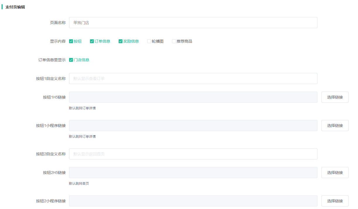 (3) 门店酒店的支付页面显示优先级为:独立后台设置>平台设置的门店类型>默认类型;门店独立后台设置的支付页和平台设置的门店类型的支付页可同时开启
