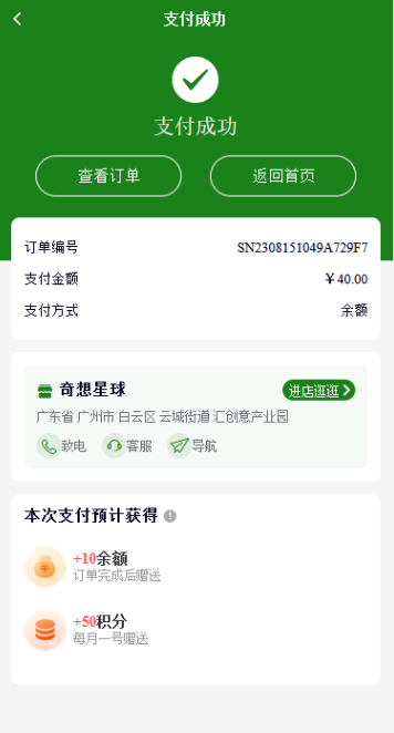 3、门店快递/收银台订单:会显示门店信息,点击进店会跳转到门店,根据后台商品经营管理-基础设置-指定点击门店进入页面